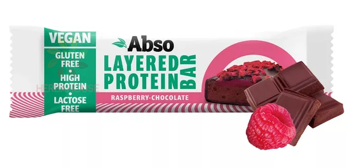 Abso Layered Vegan Bezlepková proteínová tyčinka - malina a čokoláda (50g)