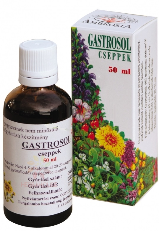 Gastrosol je výživový doplněk na bázi rostlinných extraktů vhodný na zlepšení funkce trávicího ústrojí. Bylinné kapky jsou vyrobeny z kvalitních bylin s vysokou koncentrací účinných látek.