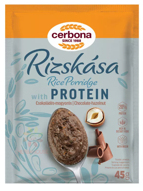 Cerbona Protein Rýžová kaše s čokoládou, lískovými oříšky a inulinem (45g)