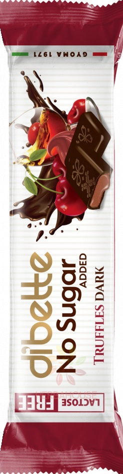 Dibette NAS Hořká čokoláda se sladidlem plněná krémem s příchutí truffle a višní v alkoholu (25g)