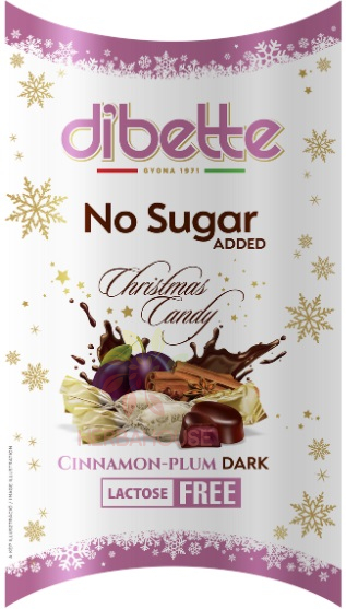 Složení: Hořká čokoláda 65% (sladidla: izomalt, kakaová hmota, kakaové máslo, emulgátor: slunečnicový lecitin, aroma); švestkově-skořicová nádivka 35% (sladidlo: maltitolový sirup, izomalt, kakaové máslo, voda, kokosové mléko v prášku, sušené švestky 9%, tapiokový škrob, mletá skořice (1%), potravinářská kyselina: kyselina citrónová, konzervační látka: sorban draselný, emulgátor: slunečnicový lecitin).