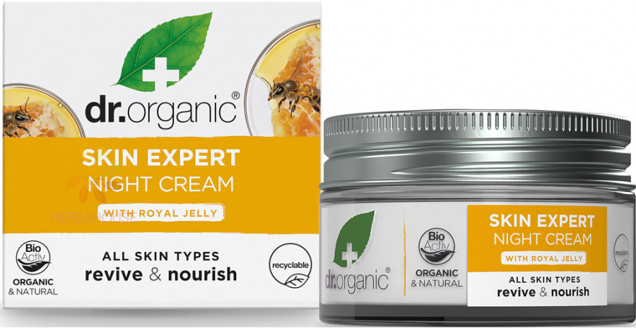 Objevte sílu mateří kašičky s nočním krémem Dr. Organic Bioactive Skincare Royal Jelly Night Cream. Tento výživný hydratační krém poskytuje pleti hloubkovou regeneraci, zpevnění a přirozený jas. Díky jedinečnému spojení bioaktivní organické mateří kašičky, aloe vera, arganového oleje, bambuckého másla a rostlinného extraktu Menyanthes Trifoliata (klinicky testovaná vodní rostlina se silnými anti-ageing účinky) je ideální pro každodenní péči o všechny typy pleti.