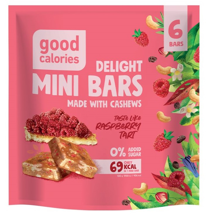 Good Calories Datlové mini tyčinky s kešu ořechy a malinami bez přidaného cukru (102g)