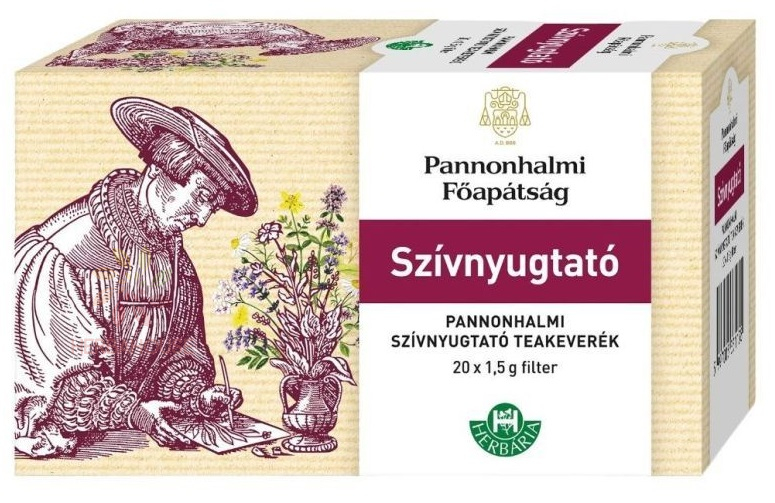 Herbáře Pannonhalma porcovaný bylinný čaj pro klidné srdce v nálevových sáčcích, sáčky jednotlivě balené s vrchním přebalem. Bez kofeinu.