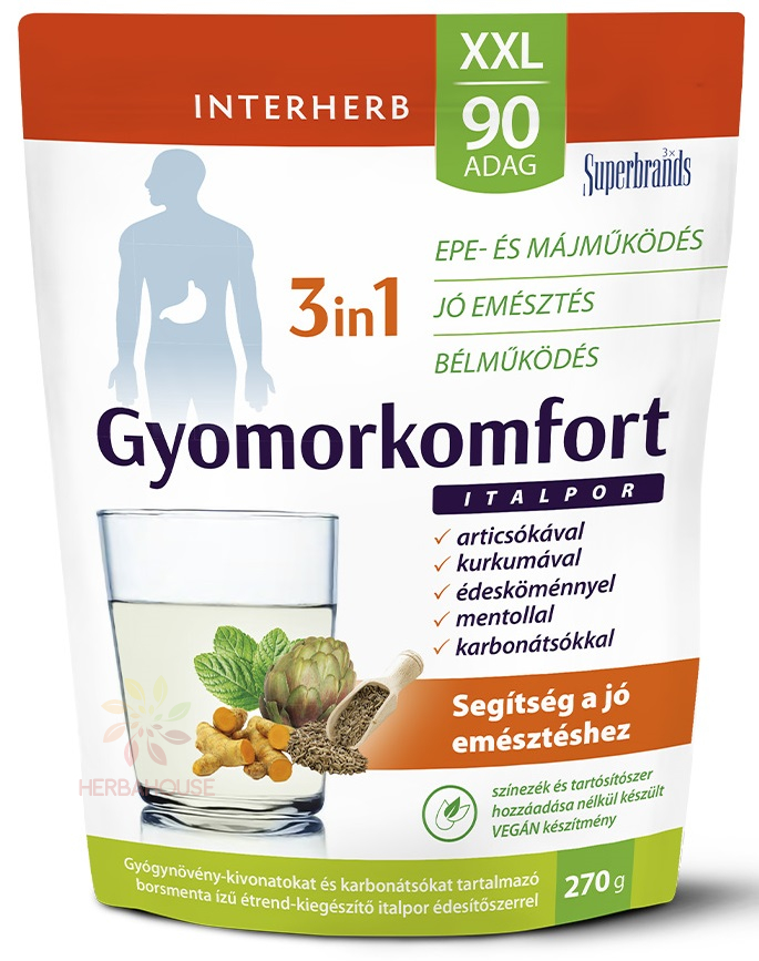 Interherb Gastrokomfort 3v1 nápojový prášek s artyčokem, kurkumou, fenyklem a mátou peprnou - na podporu trávení, žaludku, střev, jater a žlučníku (270g)