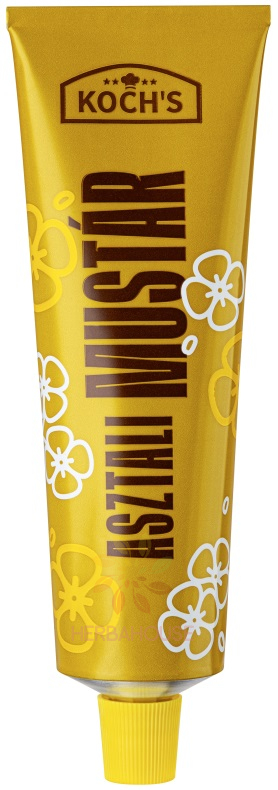 Koch's hořčice v tubě je tradiční stolní hořčice, má klasickou pikantní chuť a hladkou, krémovitou texturu – oblíbená příloha k uzeninám, klobásám a grilovaným jídlům. Uzavíratelné balení v tubě zachová kvalitu, chuť a aroma hořčic.