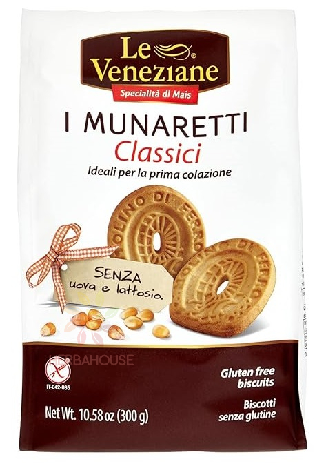 Le Veneziane je renomovaná italská značka známá svojí specializací na bezlepkové produkty vysoké kvality. I Munaretti sušenky jsou důkazem, že i bez lepku a laktózy může být sladké pečivo chutné, křehké a výživné. Dopřejte si kousek Itálie v podobě křupavých bezlepkových sušenek, které potěší vaše smysly.