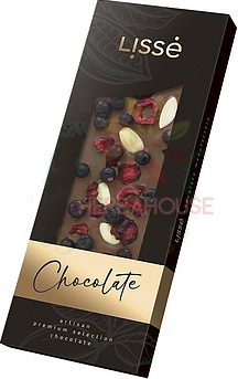 Lissé Hořká čokoláda s rybízem, malinami a kešu oříšky se sladidlem (100g)