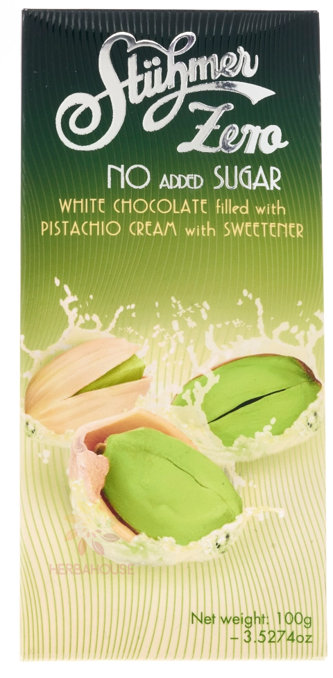 Stühmer Zero Bílá čokoláda plněná pistáciovým krémem (100g)