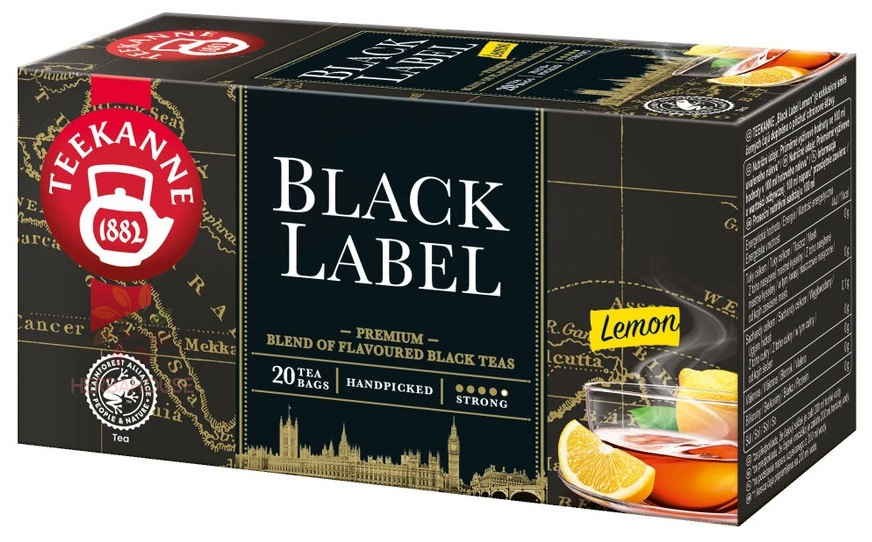 Teekanne Black Label lemon - černý čaj se svěží citrónovou příchutí. Tato lahodná čajová specialita je exkluzivní směsí černých čajů doplněných o pravou citrónovou šťávu. Vychutnejte si tento silný černý čaj s ovocnou citrónovou příchutí. Ručně sbírané čajové lístky na nejlepších plantážích v jedné z nejdůležitějších oblastí pěstování čaje v Assamu v jihovýchodních Himalájích nabízejí vysoce kvalitní černý čaj se svěží citrónovou příchutí.